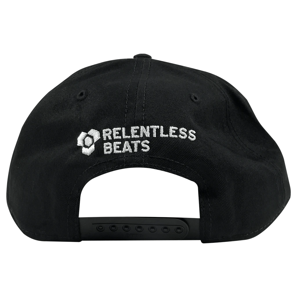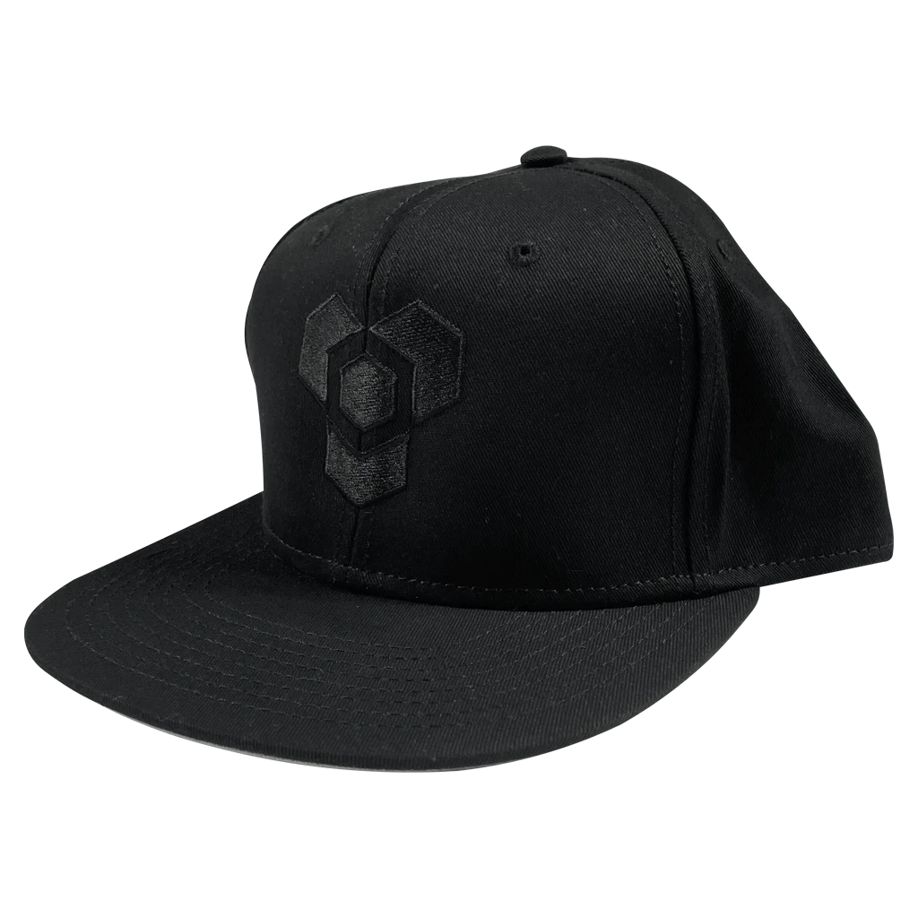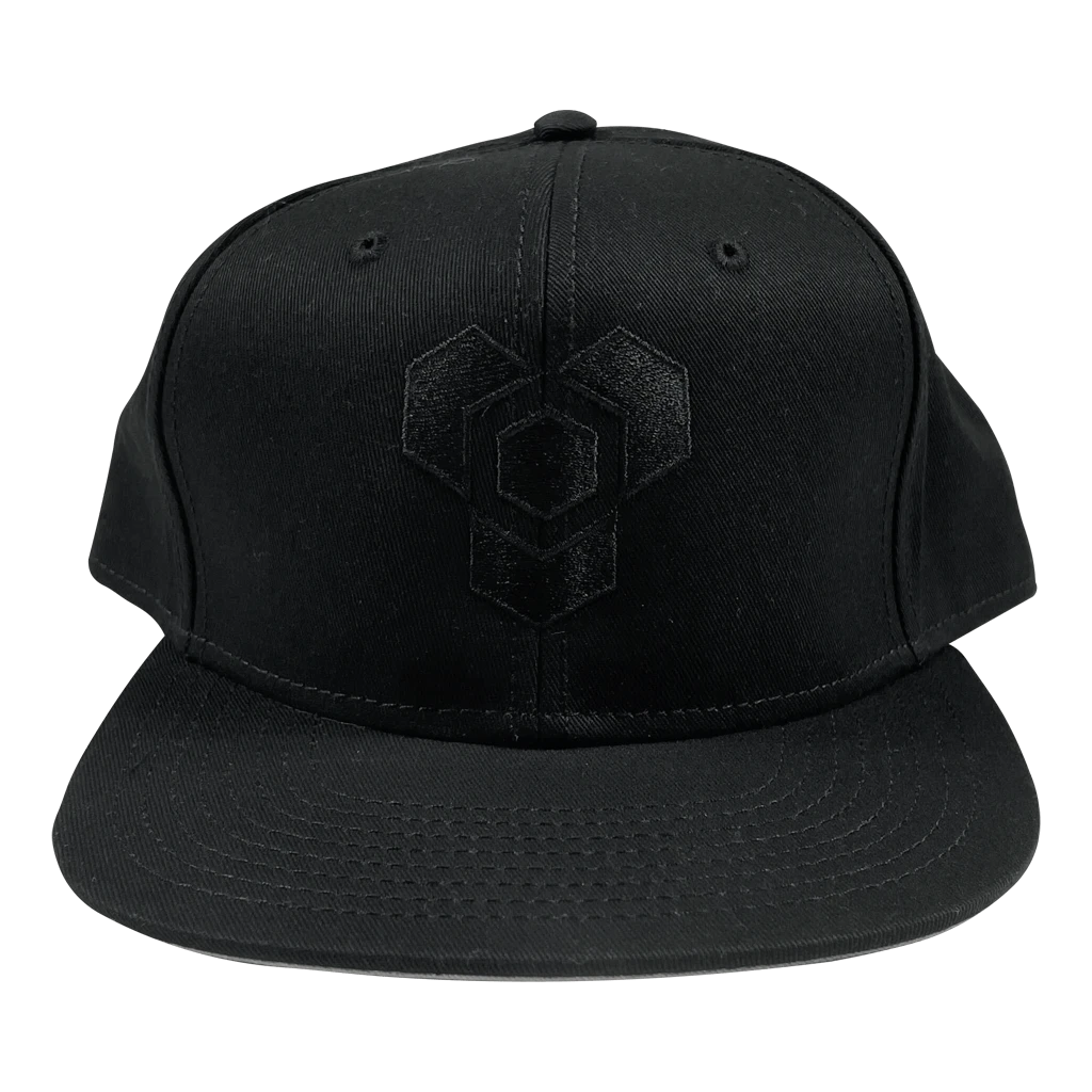 Black embroidery on black snapback hat
