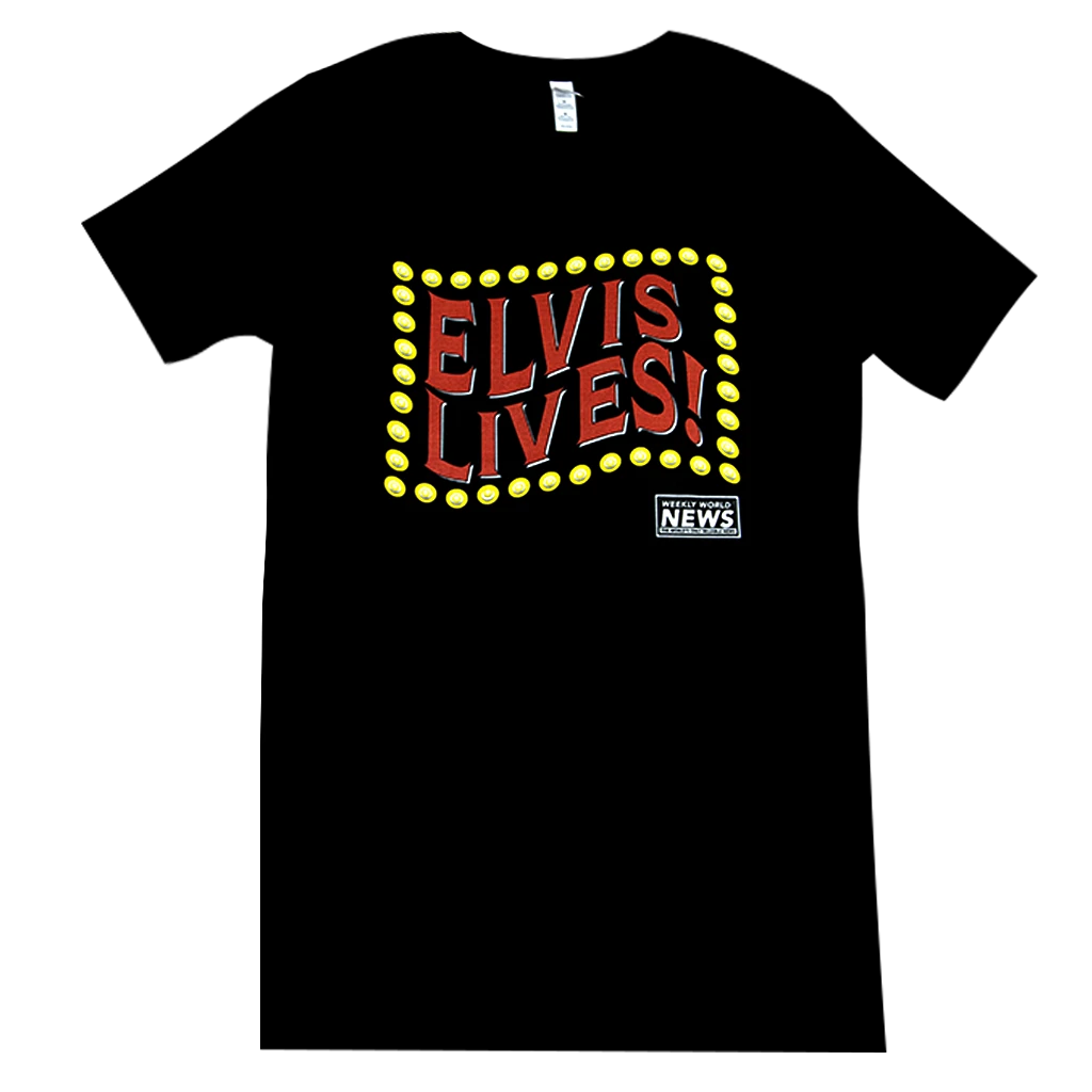 Elvis Lives! Shirt- Based on Classic Weekly World News Headline – Printed on 100% Cotton.