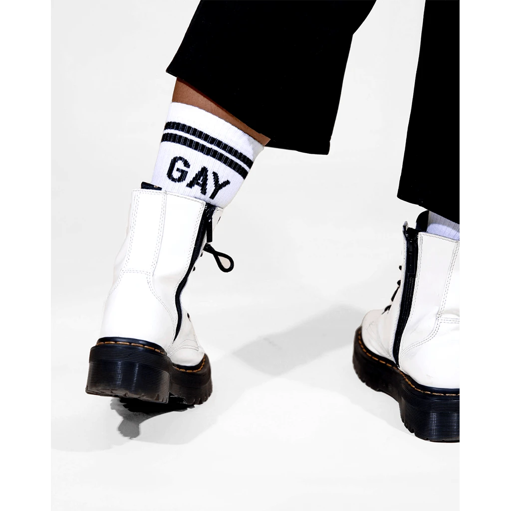 Ribbed cotton crew with compression and cushion. One Size — will fit a woman’s size 6 up to a men’s size 11.