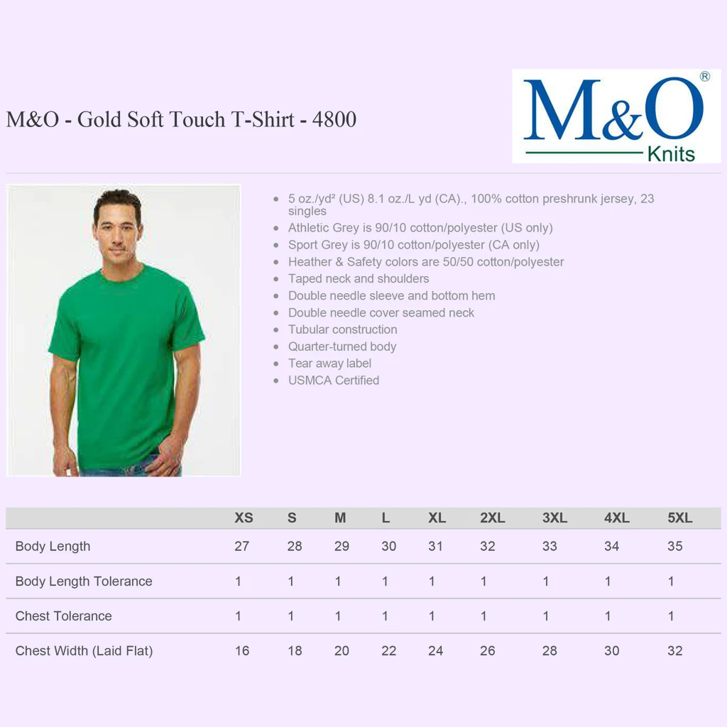 Printed on M&O 100% cotton preshrunk jersey