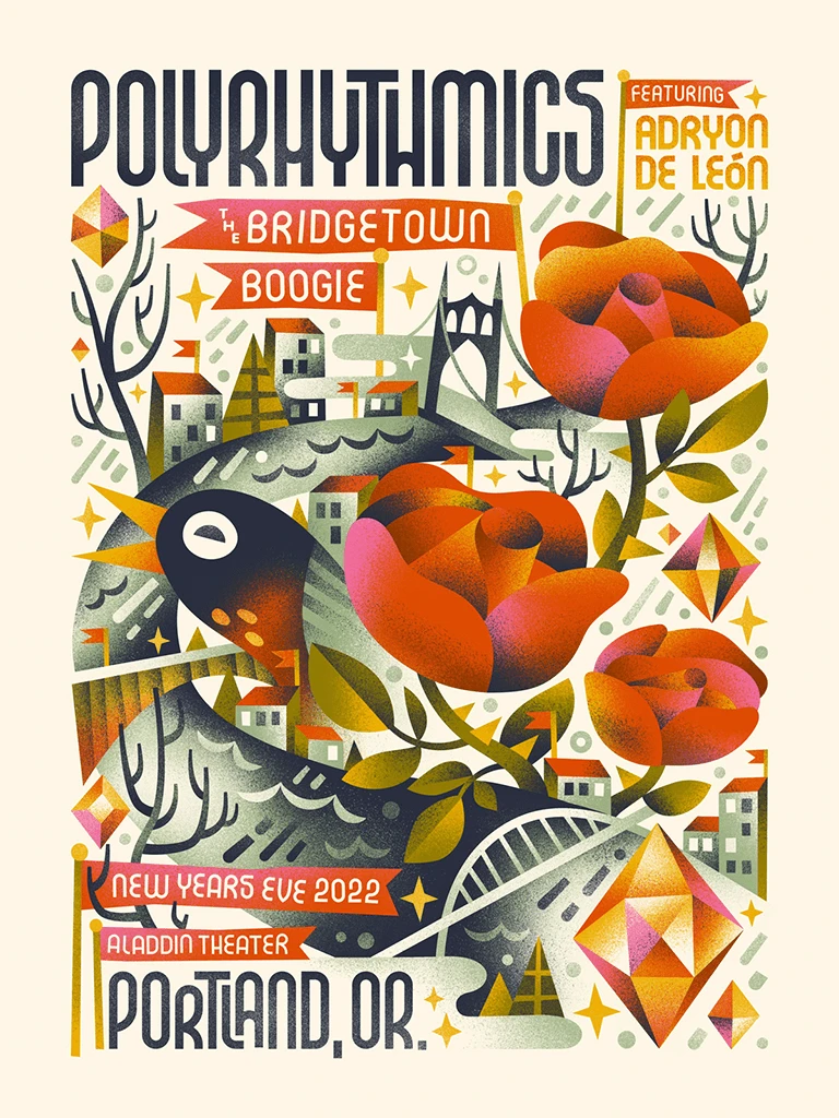 Limited Edition 18 x 24 screen print commemorating New Years Eve 2022 in Portland, Oregon.