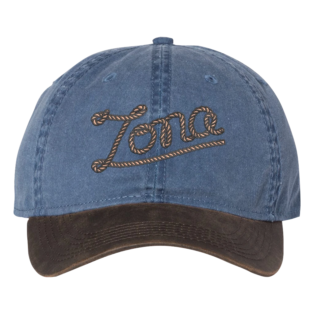Embroidered denim hat.