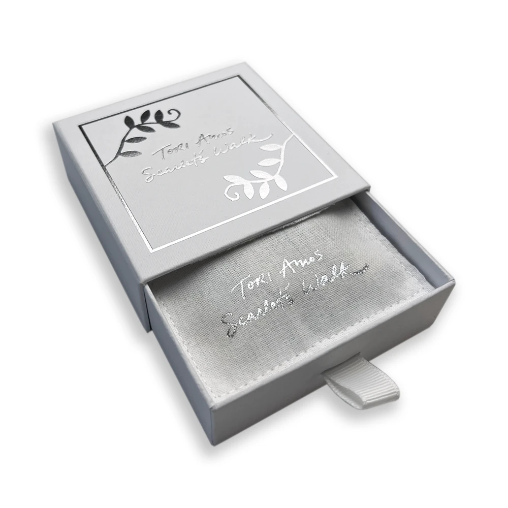- Custom drawer gift box with interior natural cotton envelope pouch.