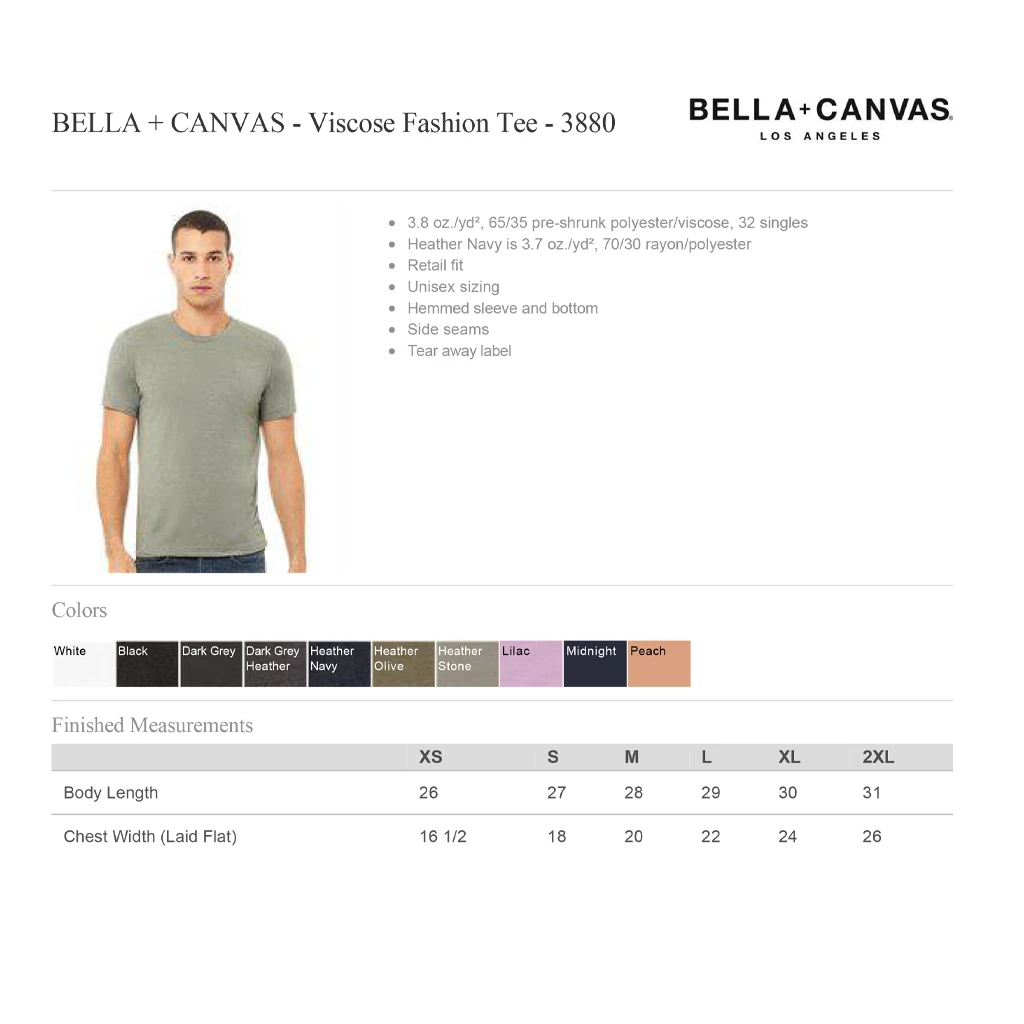 Printed on Bella Canvas, 65% Cotton/35% Viscose.