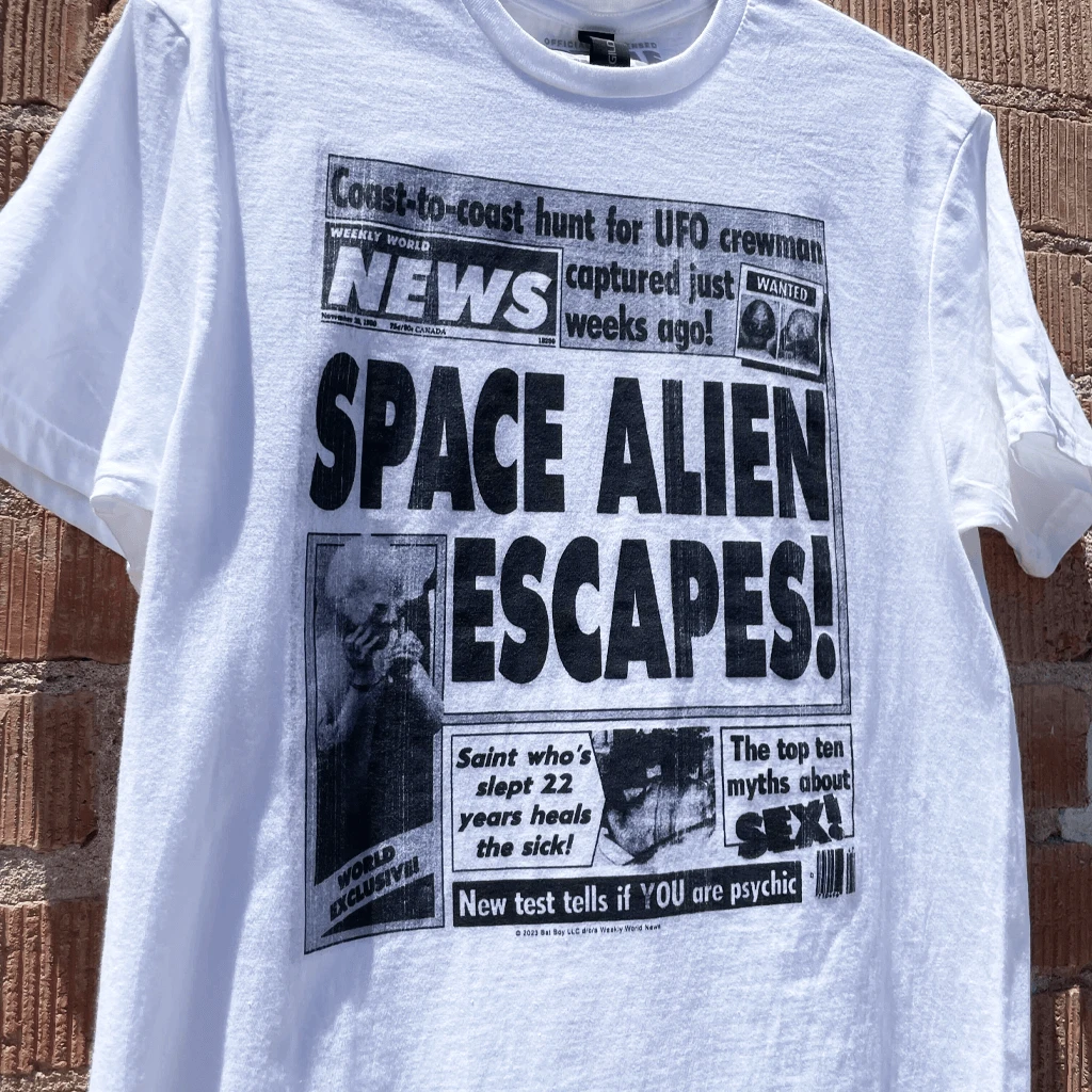 Be the first to review “Space Alien Escapes White T-Shirt” Cancel reply