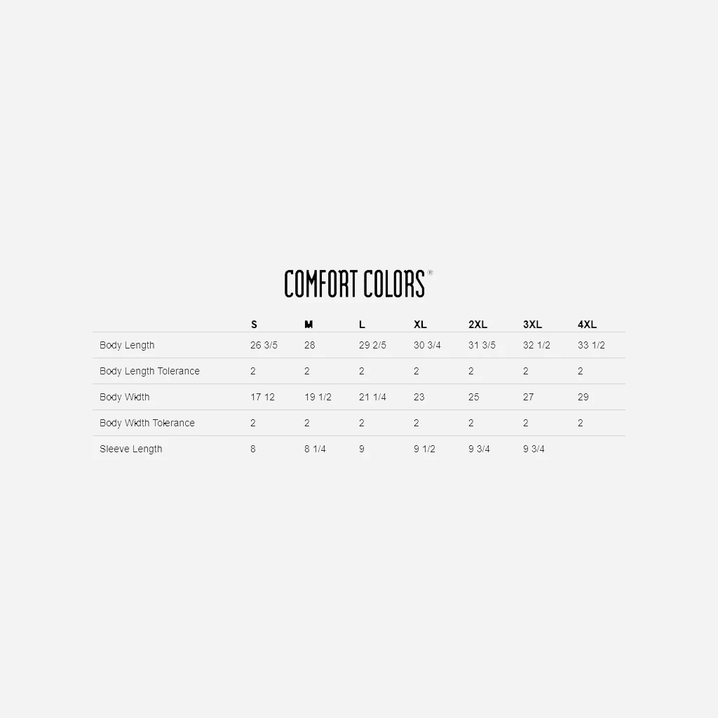Printed on Comfort Colors 100% Cotton, Unisex.